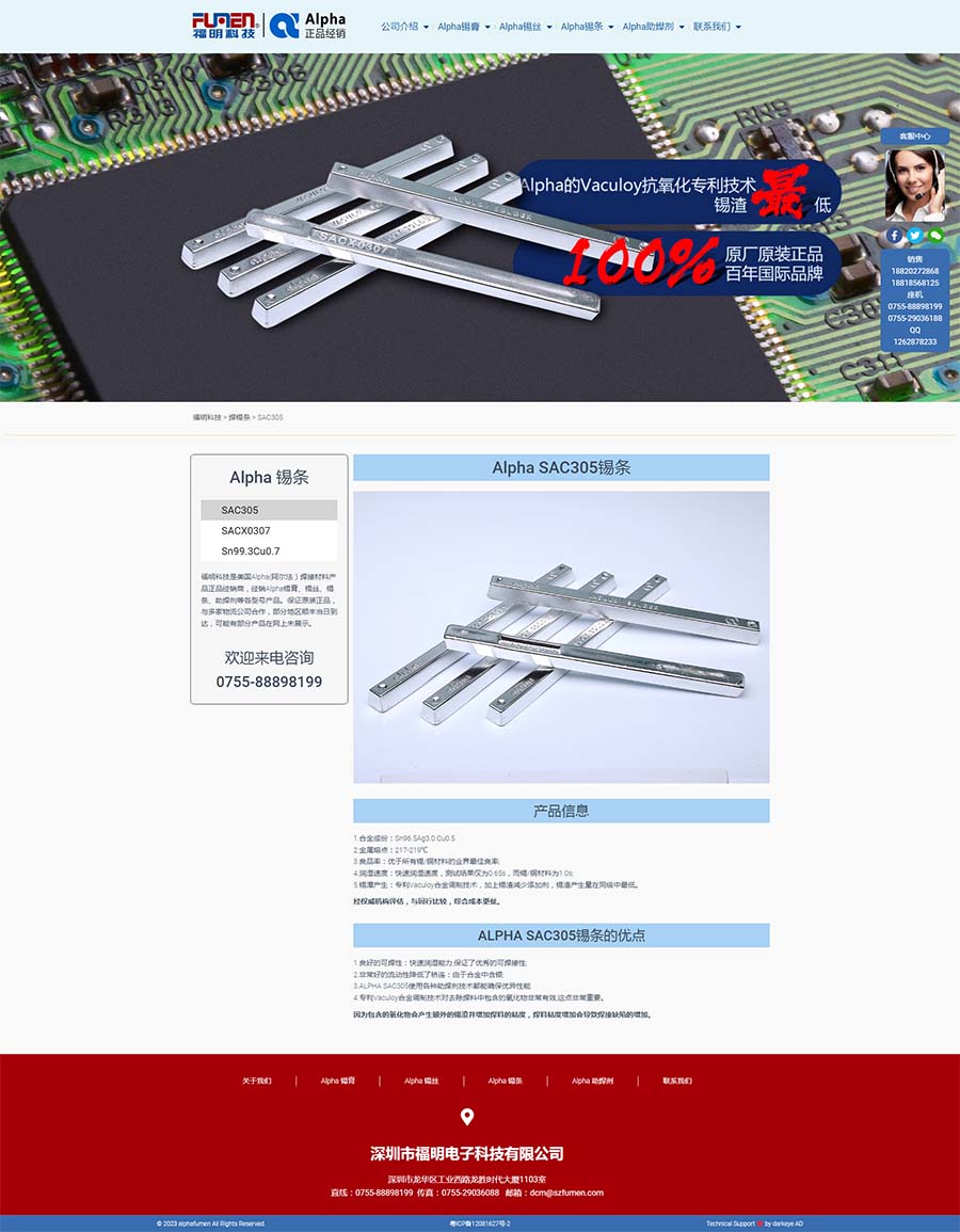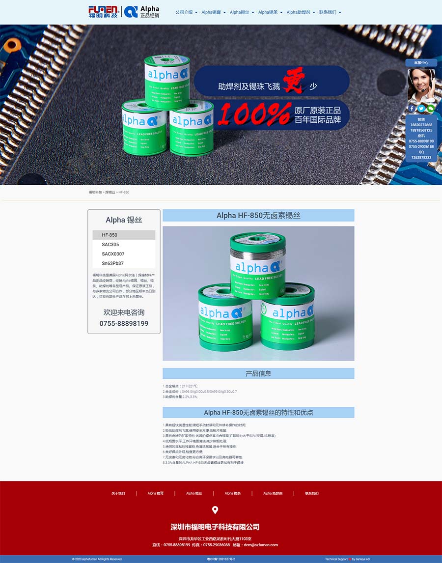 福明科技能夠與全球一流的焊錫品牌Alpha(阿爾法)合作,是福明科技的榮幸。我們將以最好的產品質量、最快捷的售后服務、最優惠的市場價格,為客戶提供高性價比的產品和優質的服務。